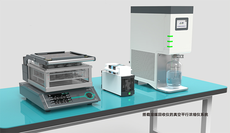 “干式”低溫冷凝——溶劑回收更高效 APE 系列不僅可以選擇傳統(tǒng)的冷卻循環(huán)水機(jī)搭配玻璃冷凝器對(duì)溶劑蒸汽進(jìn)行冷凝回收,還可以選配 eSR220S 溶媒回收儀對(duì)溶劑蒸汽進(jìn)行高效冷凝回收,溶媒回收儀采用“干式”低溫冷凝技術(shù),無(wú)需使用冷卻循環(huán)液,-20℃低溫下對(duì)溶劑蒸汽直接進(jìn)行冷凝,特別適合低沸點(diǎn)溶劑高效冷凝收集。